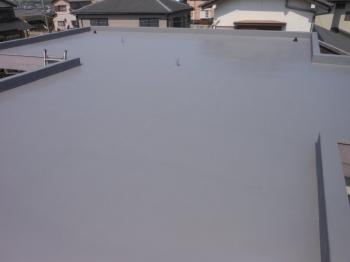 2階陸屋根のトップコート塗布です。