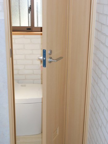 現状の浴室サイズをフルに活かす為、タカラスタンダードのぴったりサイズのシステムバス。洗面脱衣所は解体しても問題のない間仕切壁を解体し、脱衣所を広くしました。また小便器も必要ということでしたので狭小場所でも出入りがしやすいサニタリードアをおすすめ致しました。
