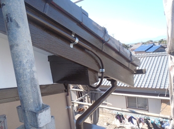 シリコン塗料のなかでもトップクラスの「クリーンマイルドシリコン」での塗装をご提案いたしました。またテラスの波板、ダクト、電気配線の固定バンドも老朽化していたため取り換えをおすすめしました。
