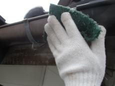 軒樋の目粗し作業の様子です。
