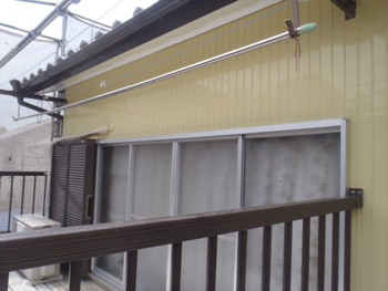 玄関面は20年のセルフクリーニング効果のあるTOTO光触媒ハイドロテクトECO-EX、トタン部分は日本ペイント新塗料ファインSIをご提案致しました。
