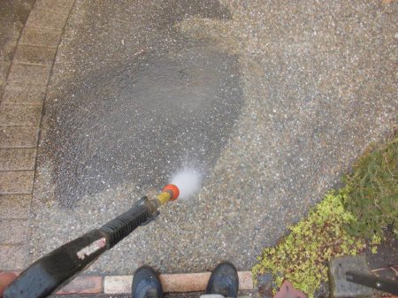 • 玄関アプローチの高圧洗浄です。時間をかけて家屋から外構までしっかり洗浄します。