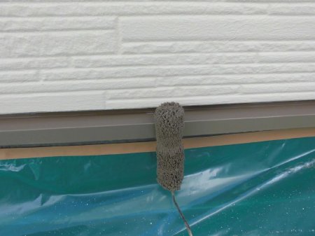 • 軒天と外壁取り合い部のプライマー塗布の様子です。