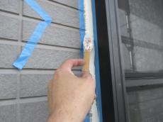 胴差幕板ジョイント部、上端部、外壁サイディング板間目地、入隅部 シール処理後です。