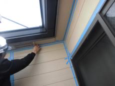 軒天換気口の目粗し作業の様子です。細かいキズをつけ、塗料の付着面積を高めます。