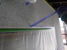 庇板金(上部)の下塗り(サビ止め)塗布作業の様子です。