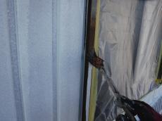トタン外壁の下塗り(サビ止め)塗布作業の様子です。